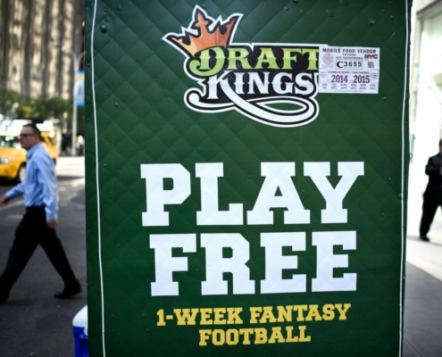 Internet Gaming News, NewsA DraftKings poster hangs in New York, above. The company delivered an impressive long-term outlook, but its stock slumped. (Image: New York Times)