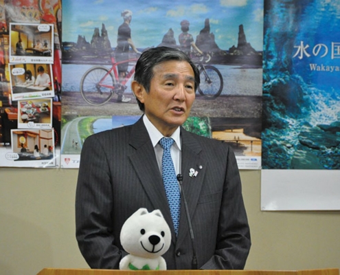 Casino News, NewsWakayama Governor Yoshinobu Nisaka speaks at a prefecture tourism event in 2019. Nisaka is urging prefecture lawmakers to quickly approve of the region’s plans to host an integrated resort casino. (Image: Inside Asian Gaming)